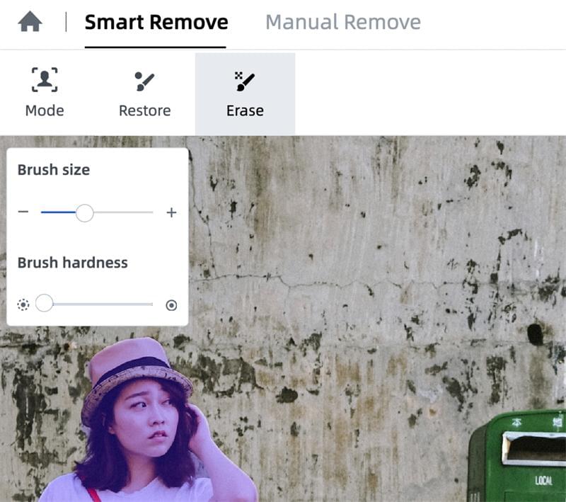 当你自动抠图完后如果有哪边不 OK 的话,可以通过 Restore(还原)及 Erase(清除)这二个笔刷来细修一下,不过老实说手动要细修真的相当有难度,大家可以试看看。
