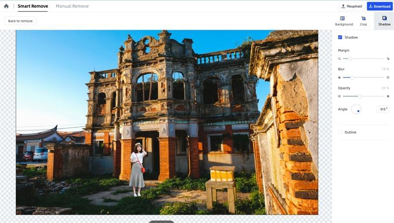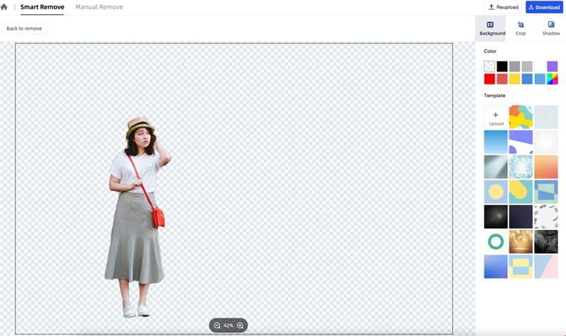 修完后点击右上角的 Background 还可以替换其他背景,除了内置的一些颜色图样之外,也可以按 Upload 自行上传背景。